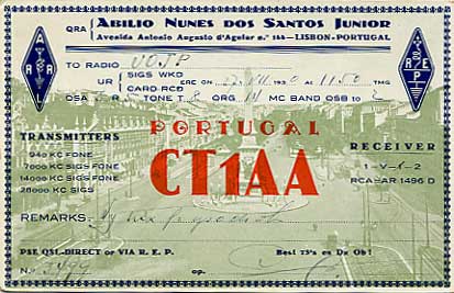 ![]() Esta QSL rara do CT1 AA Abilio Nunes, de 1930, confirma a recepção de V0 JP. Faz parte do nosso arquivo (Arquivo Português de QSL/Clássicos da Rádio), foi gentilmente cedida por Wolf Harranth da QSL Collection, Viena. (Propriedade: Arquivo Português de QSL) |